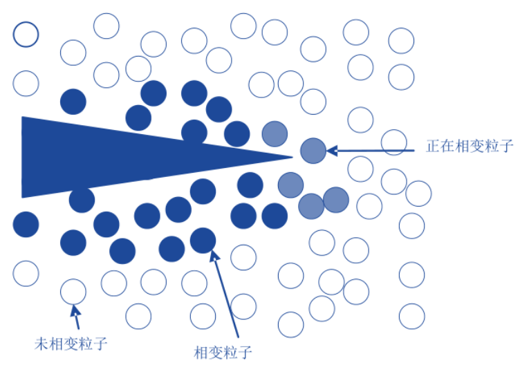 在一定條件下,相變引發體積膨脹在基體中引起均勻分散又不互相連接的微裂紋,增加材料的斷裂表面能,吸收主裂紋擴展的能力,達到增加斷裂韌性的效果。