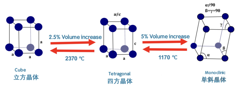 圖 氧化鋯晶體結構及其相變,來源網絡